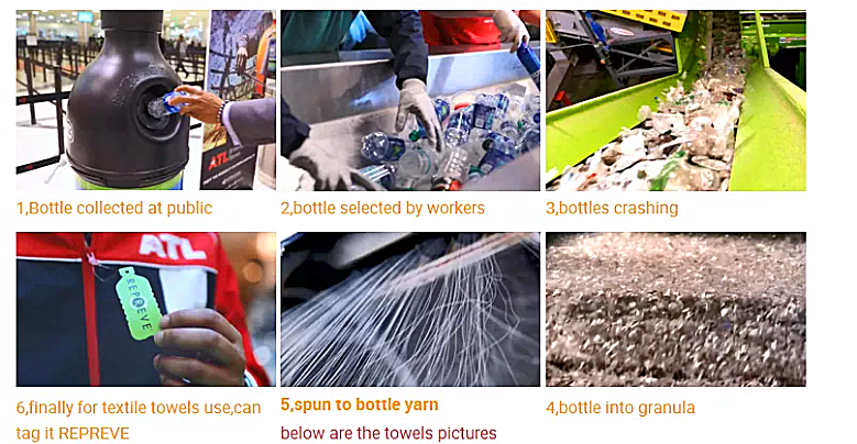 The following is the process of making recycled materials. Let’s take a look at how plastic bottles are made into towels.